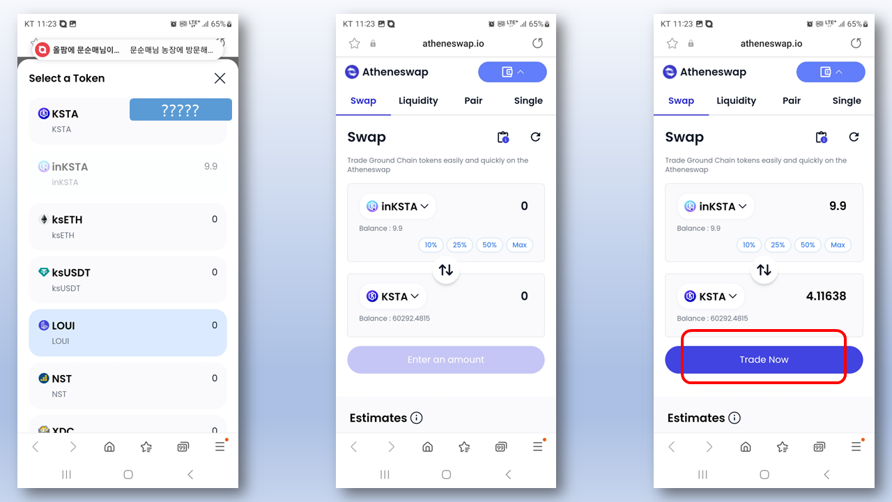 아테네 스왑에서 inKSTA를 KSTA 코인으로 스왑하기