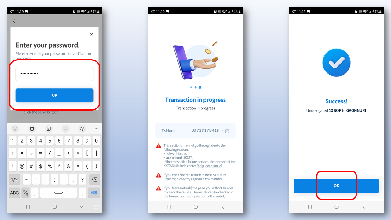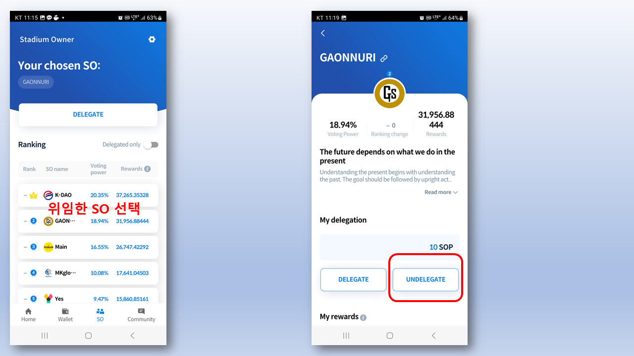 지금부터, KSTADIUM 커뮤니티 풀에 위임 된 SOP를 위임 철회하여 확보한 SOP를 flux에 위임하여 inKSTA를 확보하는 과정을 알아보자.